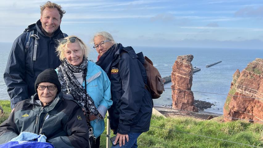 Einmal noch auf Deutschlands einziger Hochseeinsel, nämlich der Insel Helgoland, ein Bismarckbrötchen essen. Ein Wunsch von Ekkhard H. und seiner Schwester Elke C., dem unsere Wunscherfüller:in Susanne Meinert und Lars Timm gerne nachgekommen sind. Als Herr H. noch ein Schuljunge war, konnte er Helgoland erstmalig besuchen. Den Aufenthalt hat er in sehr, sehr schöner Erinnerung behalten.