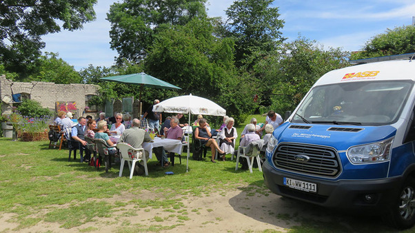 Unser Wunscherfüller Ronald Osterode, ein sehr guter Freund unseres Fahrgastes, hat sich der Sache angenommen und die Fahrt gemeinsam mit Sascha Köpke und Dr. Rudolf Kraft begleitet. Vom Hospiz, dem Rickers-Kock-Haus in Lübeck, ging es mit dem Wünschewagen ins 30 Kilometer entfernte Gleschendorf, wo die Familie des schwerkranken 73-Jährigen eine fröhliche Gartenparty vorbereitet hatte.