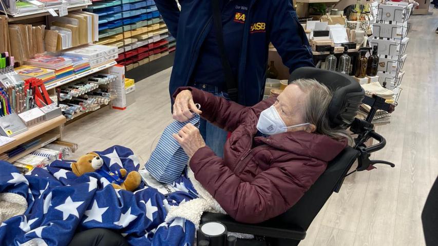 Mit den Fischbrötchen und einem Aal im Gepäck machen wir uns auf den Weg zu unserer „VIP-Location“. Herr Traulsen hat seinen Teil unserer Arbeitsteilung optimal erfüllt und erwartet uns vor Ort. Wir dürfen auf die Terrasse des „Pier-Speicher“, eine tolle Location, direkt mit Blick auf den Hafen, wo wir windgeschützt sitzen können. Das Team vor Ort ist reizend, der Kaffee sehr lecker (Ich komme wieder!) und das Fischbrötchen scheinbar die absolute Erfüllung. Herr Traulsen bleibt, schnackt mit Clara und Lucie über den Wunsch, nach Kappeln zu kommen (was er scheinbar sehr gut verstehen kann), mit Laura und Patrick über den Wünschewagen, Fahrkünste (vermutlich meine) und ich bin ein bisschen begeistert, wie schön dieser Tag bereits ist. Clara macht sich zwischendurch jede Menge Gedanken. Ob Herr Traulsen nicht friert, weil er nur ein Jacket trägt. Ob der Aal, den wir gekauft haben, nicht zu teuer ist. Ob ich wirklich den schweren Rollstuhl schieben kann, weil ich einige Tage vorher gefallen bin und meine Hände etwas lädiert sind. In all dem steckt so was wie eine Unsicherheit, ob sie „diesen ganzen Aufwand wirklich wert ist“ - Lucie bestätigt, dass es für ihre Mutter gar nicht so leicht ist, das alles anzunehmen. Ja, liebe Clara, das warst und bist du, inkl. Fischbrötchen und allem, was dazu gehört! Den Fahrgästen entstehen nie Kosten, weil das, was wir bezahlen, vom ASB übernommen wird – weil es viele Spenderinnen und Spender gibt. Umso schöner, wenn wir, wie in diesem Fall, zum Kaffee eingeladen werden. Danke!