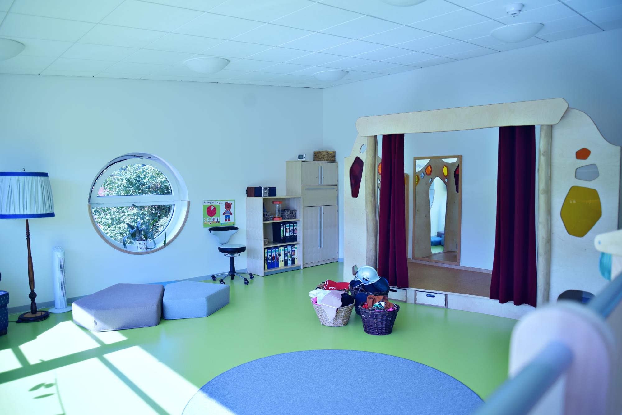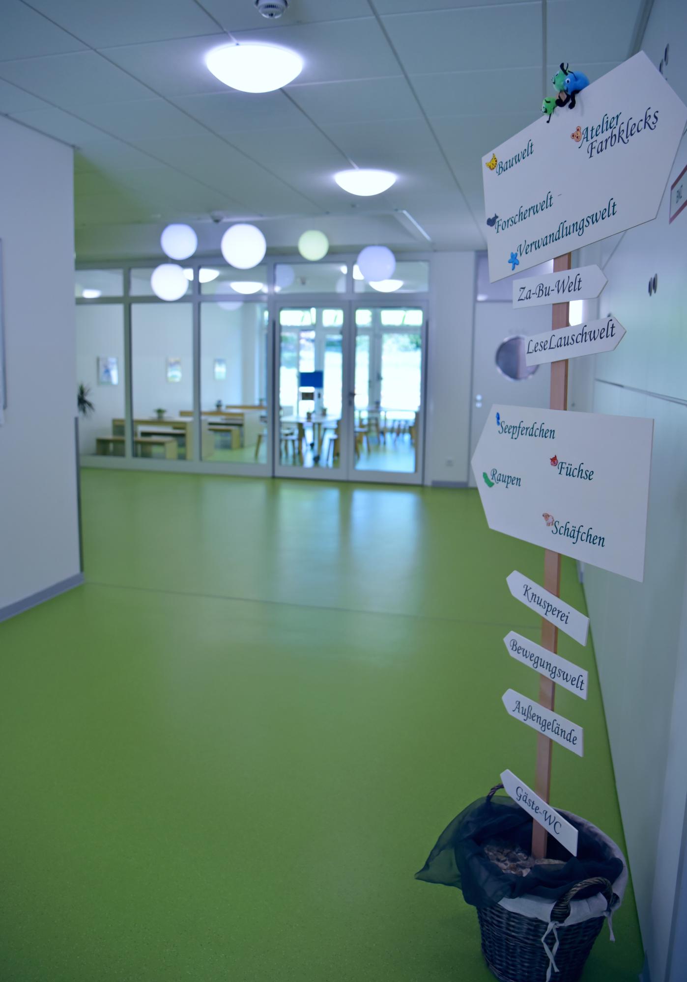 Das neue Gebäude mit hellen anregenden Funktionsräumen für Kindergarten- und Krippenkinder bietet viel Raum zur Selbstbildung. Orientiert am offenen Konzept und der Reggio-Pädagogik haben die Kinder die Möglichkeit, zu spielen, zu entdecken, sich auszuprobieren, sich mitzuteilen und mitzuentscheiden, um für das große Spiel des Lebens vorbereitet zu sein.